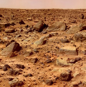 Rock-strewn surface imaged by Mars Pathfinder